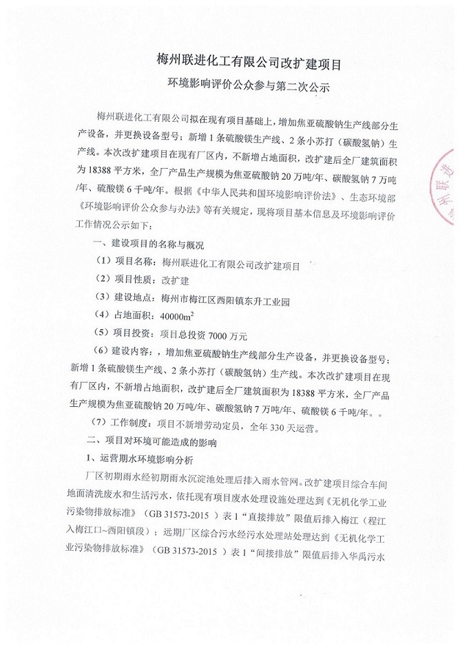 梅州聯(lián)進(jìn)化工有限公司改擴建項目環(huán)境影響評價公眾參與第二次公示